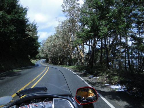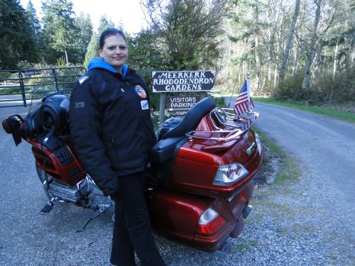 As we returned to our bike we spotted the sparkle of chrome on the dam we had just visited. Excitedly we realized there were other DT riders out! As we donned our gear the two bikes drove past and we all waved. Angela said “hey, was that…I think I recognized…nah. Couldn’t be.” But sure enough, the bikes suddenly swung around and, lo and behold, it was a smiling DamDan! He and another rider, Fred, were out snagging dams and Dan had recognized us. We all chatted for a few minutes about our days adventures (they had met hail several times in an earlier dam pursuit that morning) then waved as we went our own ways. Now starving, we pointed the bike towards Oak Harbor to try a restaurant I had seen on the way to the dam named Island Diner, advertising themselves as a “family restaurant”. We ate a late lunch, then, with belly’s full and moods upbeat, we went south again in search of our last item for the day, the Wing Washington location Meerkerk Rhododendron Gardens.