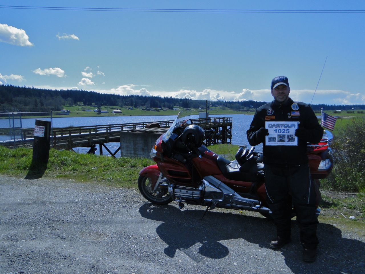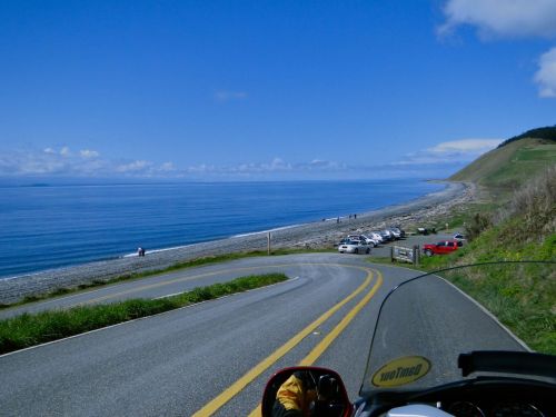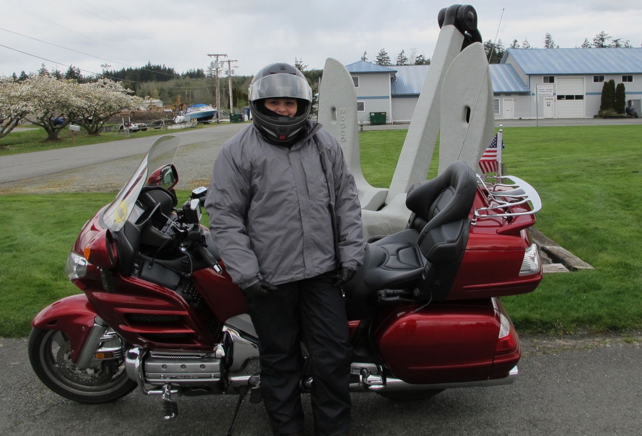 It was ironic, as we approached the dock we commented on the newer version of bumpers – no longer wooden pilings with tires wrapped around them but high-tech fancy-looking things. Then we got an up-close look at them and experienced them in action as the boat drifted into one of them. The captain backed up and gave it another shot as the tides were running pretty fast through the terminal waters. Just as the ferry was attempting its second try, the boat took another, harder, bump this one rattling some nerves, including mine. But this time we were already in the chute and it just bounced us over to the bumpers on the other side, like a fairly large pinball, and then we were secured to the ramp. The ride home from Port Townsend was easy and uneventful. We got to try our new Good-to-Go pass in the process – Angela holding up the plate as we passed the sensors (I hope it worked) – and arrived home just as rain started to fall. As we got our gear off the bike and started to unwind we both were still smiling and reliving the day’s adventures. It was another wonderful day on the Wing. 13½ hours and 316 miles of enjoyment. And we got to meet DamDan again… Bonus!