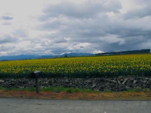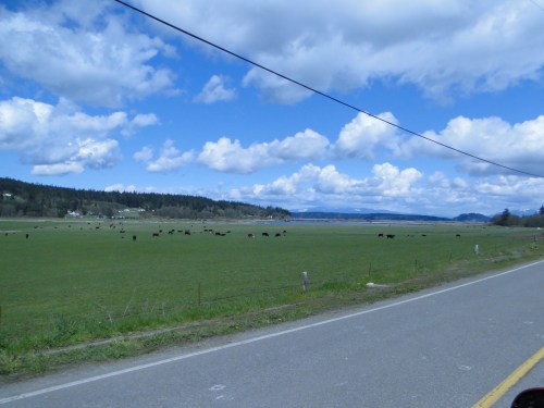 (Angela would like to give a shout out to the town of La Conner for their clean public restroom facilities located on Main Street). After leaving La Conner we traveled through some nice fertile farmland, including a few fields full of daffodils.