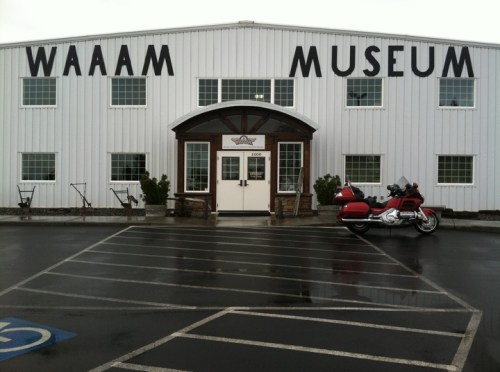 Before this trip Angela had prepared the GPS with potential Wing Washington, Grand Tour, and Dam locations that may be in the area of the days ride. Not knowing our route, she included all 15 locations she thought might be within the radius of the ride. After about 30 minutes or so of riding, I checked the GPS and found that there was a Grand Tour site just up the road and right off Hwy 84. It also happens to be the location where one of our fellow DamTour participants works. Deciding to take the time to check one of the GT sites off our passport we headed toward our new destination. Although the GPS routed us to the general location, the road it took us down dead-ended and it took a few more minutes to find the actual road leading to the site. This particular Grand Tour site was the WAAAM Museum (http://www.waaamuseum.org.html) located in Hood River, Oregon.