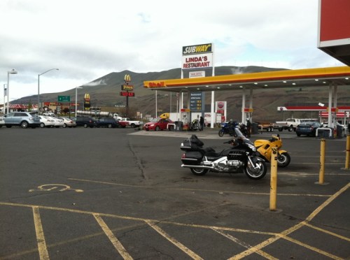 The second checkpoint, in Biggs, OR, was in a large parking lot associated with a gas station/convenience store/restaurant.