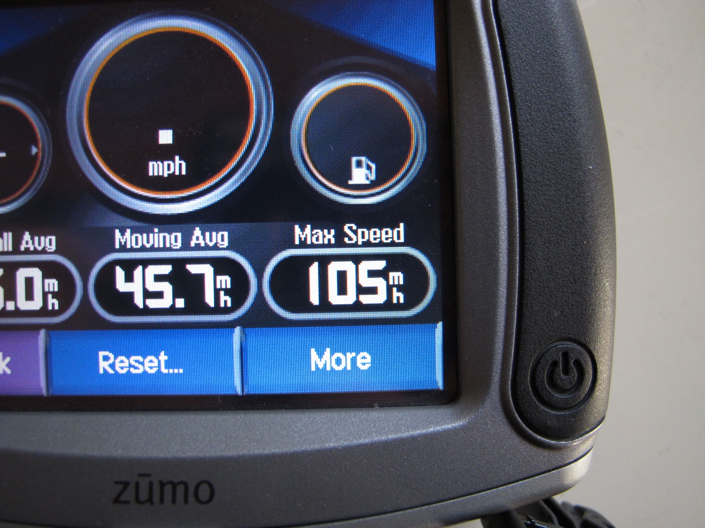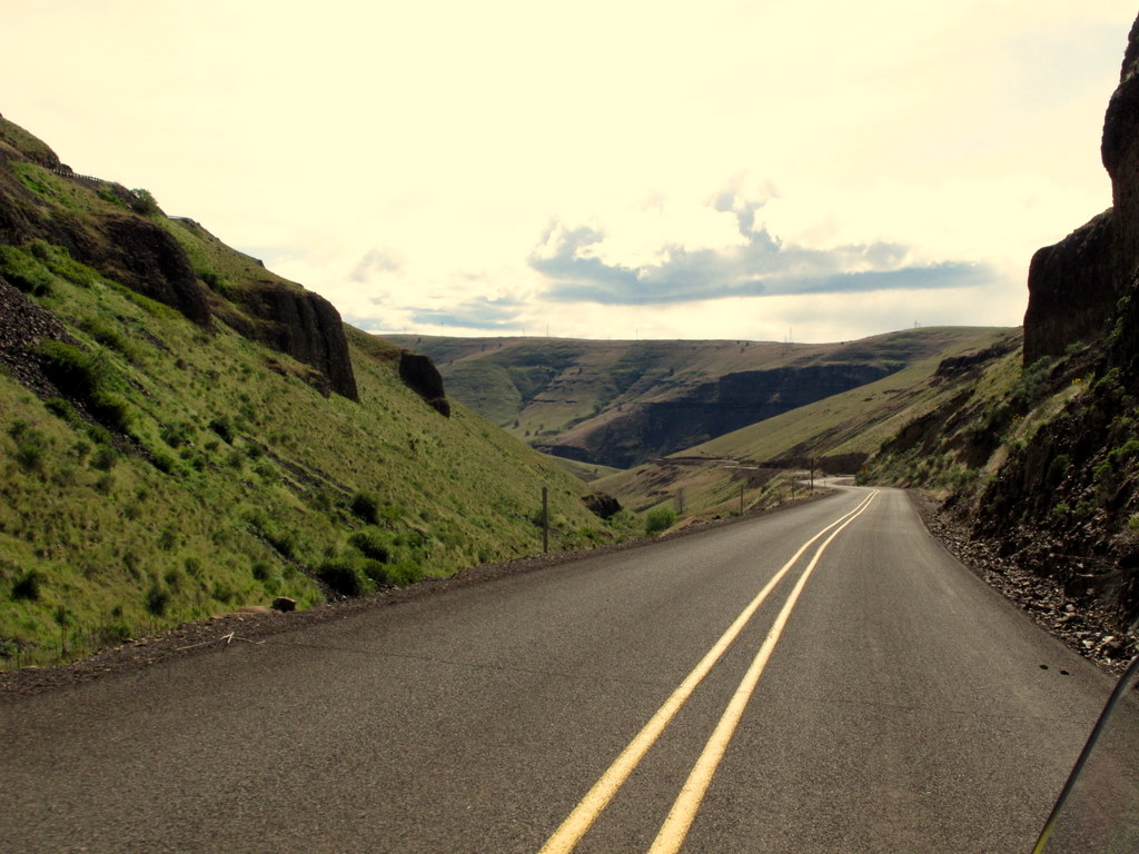 We checked in, looked our new set of instructions and decided to go have a quick bite in the restaurant while Angela did a little map review and pulled info on some locations we might be able to visit along the way. Fine with the food, disappointed by the service, and armed with the knowledge we were going to be able to get a dam and a Grand Tour location in one town along the way, we headed out. This leg was really just a big loop back to the Biggs location which would also serve as checkpoint #3. We filled up with gas as the instructions warned of limited services. We took this as a good sign since limited services means back roads with little traffic. As you can see from the picture below I had time to stop and stand in the middle of a highway and no one passed me in either direction during this photo opportunity. Oh and one other thing…(now don’t tell Mom) but on certain stretches when there is no driveways or civilization around you can really twist the throttle and get the adrenaline pumping as indicated by the number captured in the lower right of the GPS screen. SSSHHHHHHHHHH!!!!!! Don’t tell Mom or she won’t let me play with Angela anymore.
