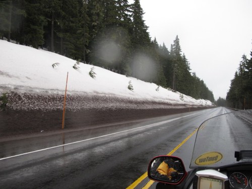 We stayed on 216 then merged onto 26 headed for Gov’t Camp. The weather up over the pass was miserable but with our rain gear on the outside and our heated clothing on the inside, we were comfortable enough.