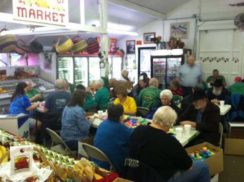 So you wake up on a lazy Sunday morning wondering what there is to do now that football is over. Well, if you’re members of Chapter V you go to Lattin’s family farm (http://www.lattinscider.com) and stuff eggs silly. And that’s exactly what Angela & I did yesterday. This was our first egg stuffing event and, being that we were pretty new to the chapter last year, all we knew about it was what was said at a chapter meeting last year. So, deciding to participate this year, we met about 12 other fellow chapter members at the 512 McDonald’s around 9am and had a little breakfast before heading out. As Angela & I were sitting eating our breakfast, we noticed the newly remodeled interior of this particular McDonald’s…the corporate trend seems to be going away from the childish Ronald McDonald décor to a higher end design with dark colors and clean lines. If it wasn’t for the play land or menu board you wouldn’t even recognize it as a McDonald’s. Whatever the reason, the décor was visually appealing and a nice change. Well, around 9:30 we all pulled out and headed south. Lattin’s was only about 25 minutes away so the ride was nice but short. Arriving just a short time later we went inside and the place was in full swing. There were about a dozen or so tables set up, and they were all nearly full. We spotted a table that had a couple of open seats, asked the couple already there if we could join them and sat down to get to work.