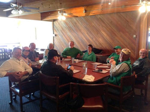 Heading east down Hwy 12 toward Packwood the weather was perfect and very welcoming. All the riders kept a good pace and before we knew it we were seeing the “Welcome to Packwood” sign. Although there are several places to feed the stomach in Packwood, Ron and Margaret stopped at a restaurant called Peters Inn. The joint had that typical small town diner vibe, but I wondered if it was even open since as we pulled in not a single car graced their parking lot. Margaret checked the front door and it was open! It was also empty so we had our choice of tables. Instead of taking over all the regular restaurant tables, Margaret steered us to a back room where we could push tables together into one great big square and also, a necessity with this group, be loud without interfering with others dining experience.  Other diners did, in fact, show up… shortly after we pulled in so did 3 or 4 other tables of patrons so it was good we were in the back.