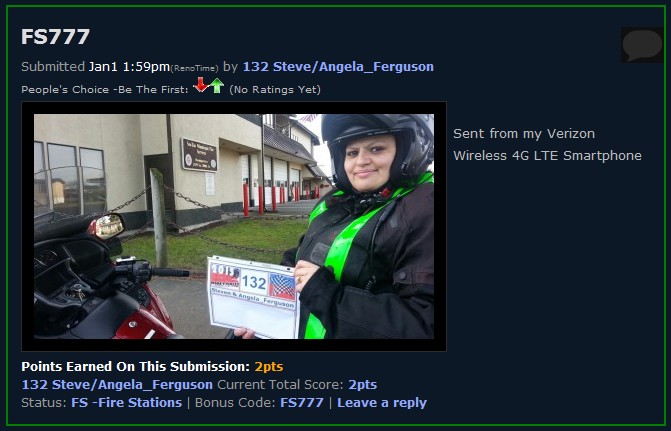 Personal Bonus (5 pts each) – we only have two weeks to submit the 4 bonus pics in this category – Favorite Person, Favorite Motorcycle, Favorite Food, and Creative Photography (interesting pic of whatever you’d like)